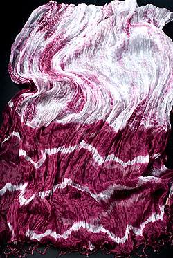 インドの薄ショール クリンクル タイダイドゥパッタ - えんじ