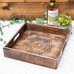 [訳あり価格]手彫りのマンゴーウッドトレイ スクエアSサイズ【30cm】