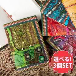 【自由に選べる3個セット】インド パッチワークノート〔13cm×9cm〕