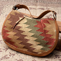 〔一点物〕伝統を紡いだ インドキリムのムーンショルダーバッグ