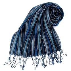 カラフルストライプスカーフ- - 水色×紺×黒系