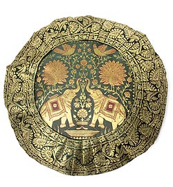 ゴールド刺繍の円形クッションカバー【緑色&青色】