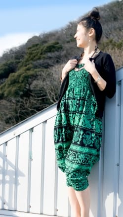 ぞうさんとお花の2WAYモモンガパンツ 【黒×グリーン】