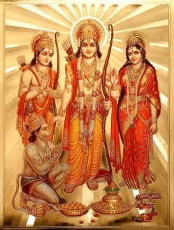 〔約40cm×約30cm〕インドのヒンドゥー神様ゴールドポスター - ラーマヤナ