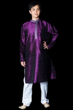 クルタ・パジャマ - パープル(刺繍が三角)【光沢生地】