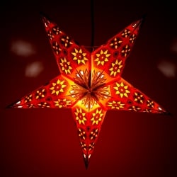 〔インドクオリティ〕星型ランプシェード - オレンジ