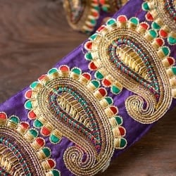 金糸ペイズリー柄チロリアンテープ(メーター売り・幅約10cm)- パープル