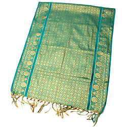 (大判)金色刺繍の光沢デコレーション布 - エメラルド