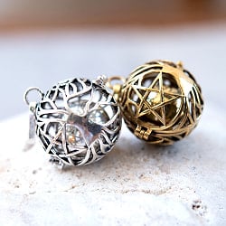 星と菩提樹柄のガムランボール【ゴールド&シルバー】 -直径約2cm