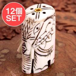 【送料無料・12個セット】水牛の角で作ったゾウさんお香立て - クリーム