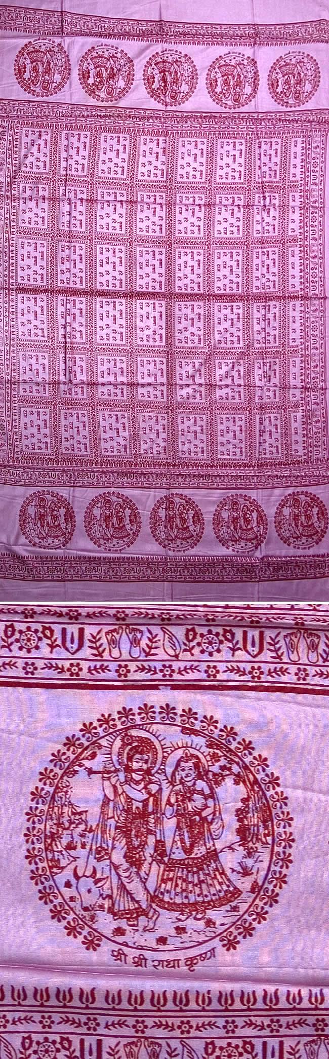ヒンディー語が神様とともに描かれた大判の布。ティラキタ以外では入手不可能なマサラテイストの濃い一枚です。ショールに、壁掛けにと用途はあなたしだいで無限大に。使用したとたん、お部屋の雰囲気をぱっとマサラテイストにしてしまう強力な一枚です