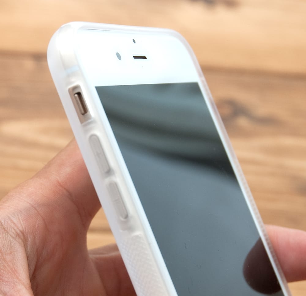 半透明のTPUケースを実機に付けて、手に持ってみました。黒、白、半透明とも、仕様は同一です