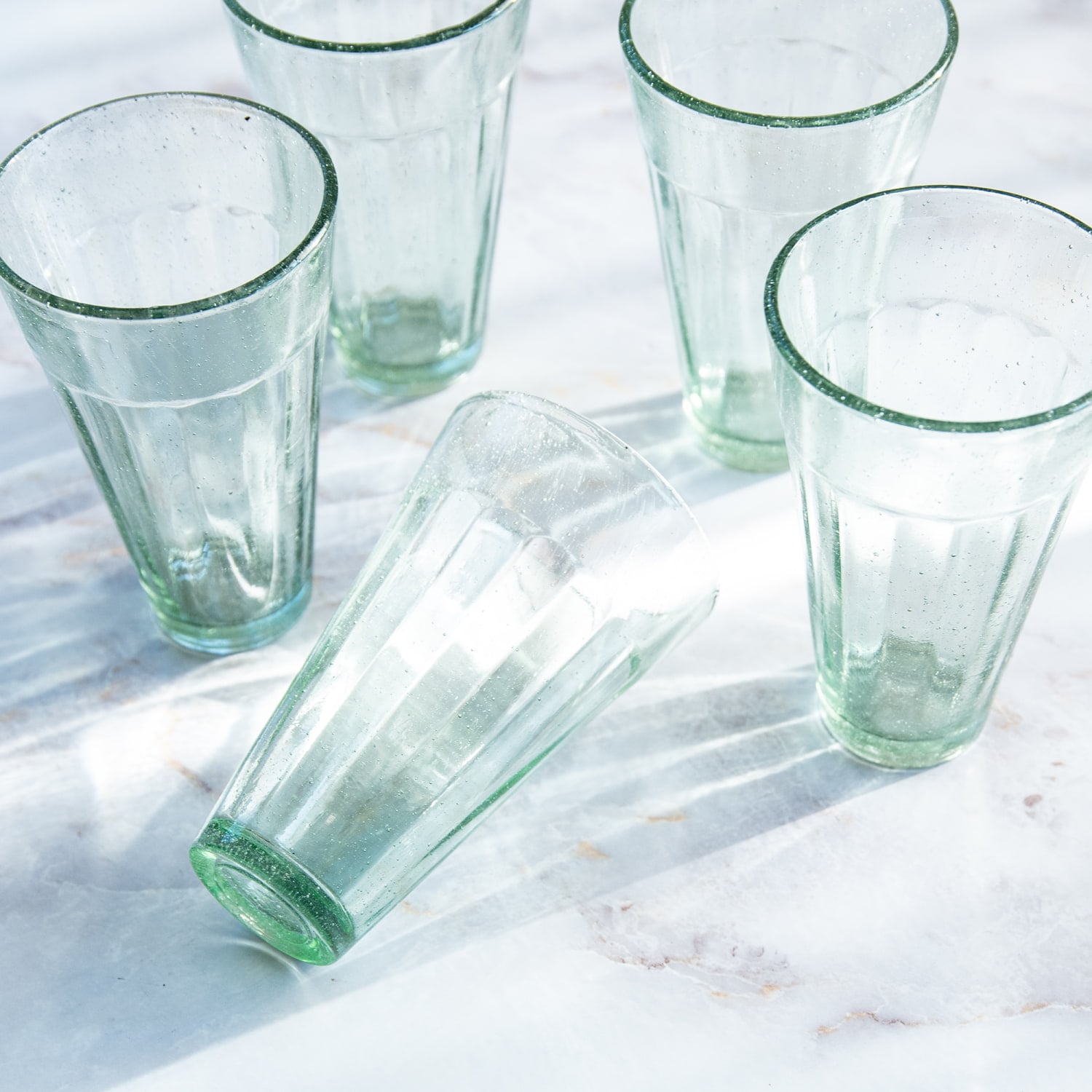 ほんのりと緑がかったチャイグラスはインドを旅したときに屋台で飲んだチャイを思い出します。ちょっとワイルドな感じのグラスですが、形や手触りが可愛らしいのでチャイを楽しむことができます。