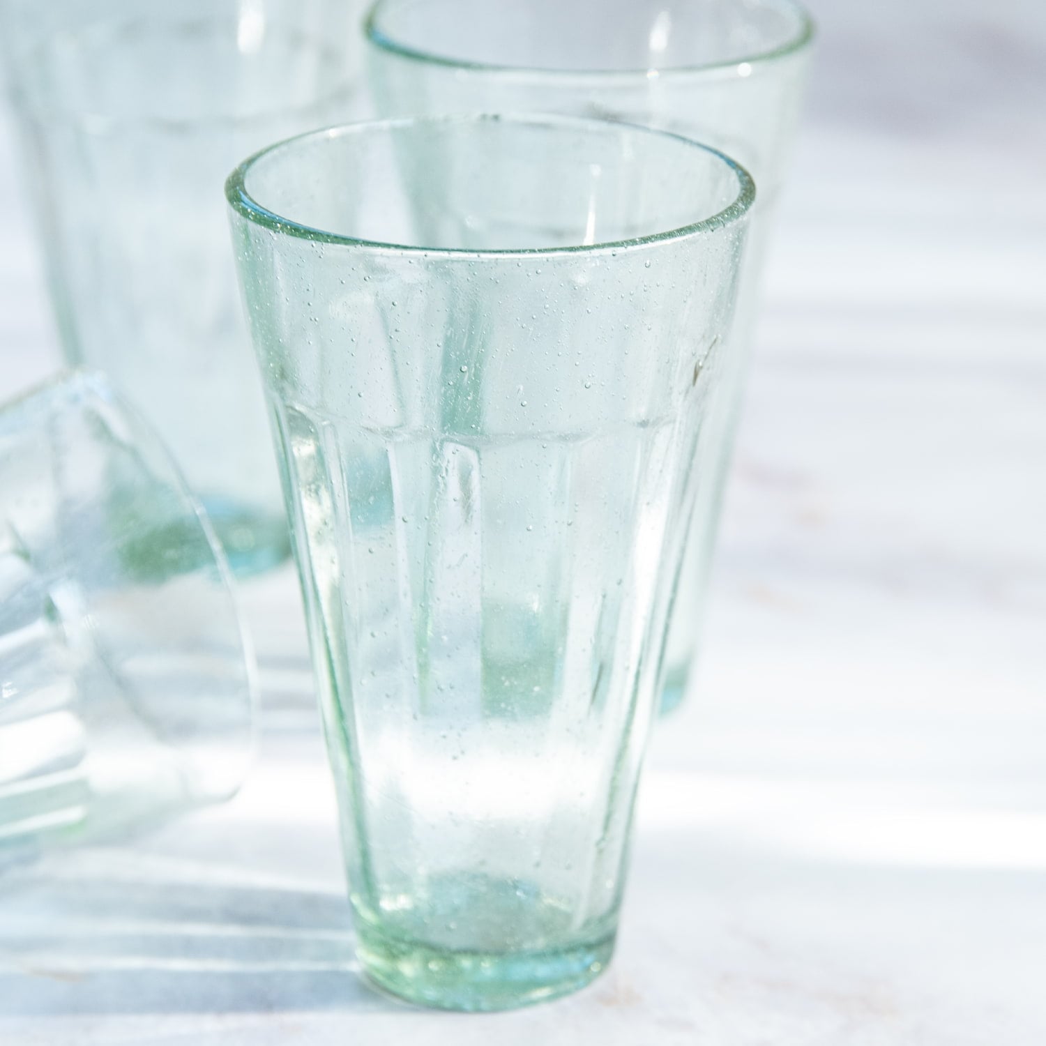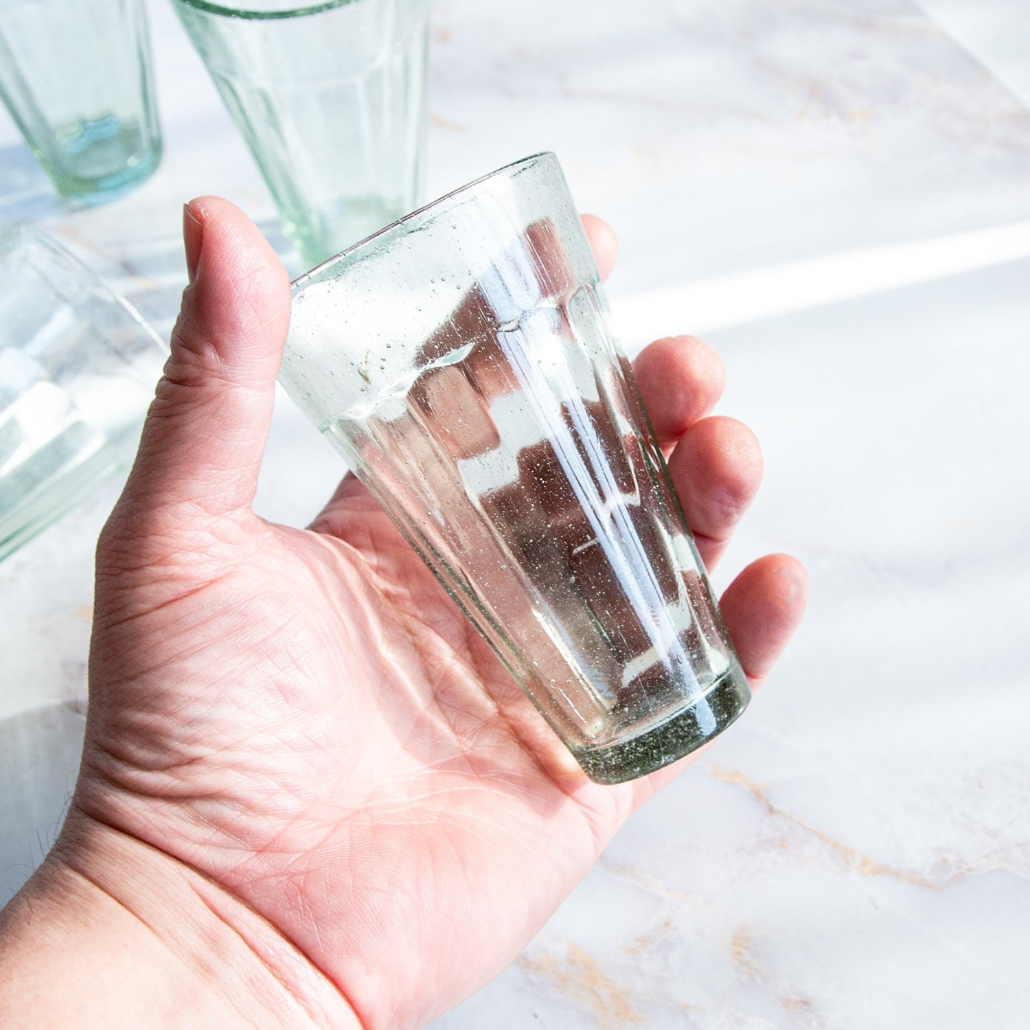 インドの大聖地、バラナシのチャイ屋さんが毎日使っているチャイコップ。手になじむ大きさ、ほんのりぬくもりが伝わるガラスの厚み、手作りが伝わるガラスの中の気泡。長く使っていただける一品です。| おことわり | 記載の容量は縁まで水を入れた際の参考容量となります。こちらの商品は、インドの古い製造工程で作られた商品で、色の違いや形の違い、ガラスのムラや小キズ、表面のザラつき等が多少ある場合がございます。割れがある物など、実用に問題のある品は、不備品として検品時に弾いておりますので、ご安心くださいませ。 |