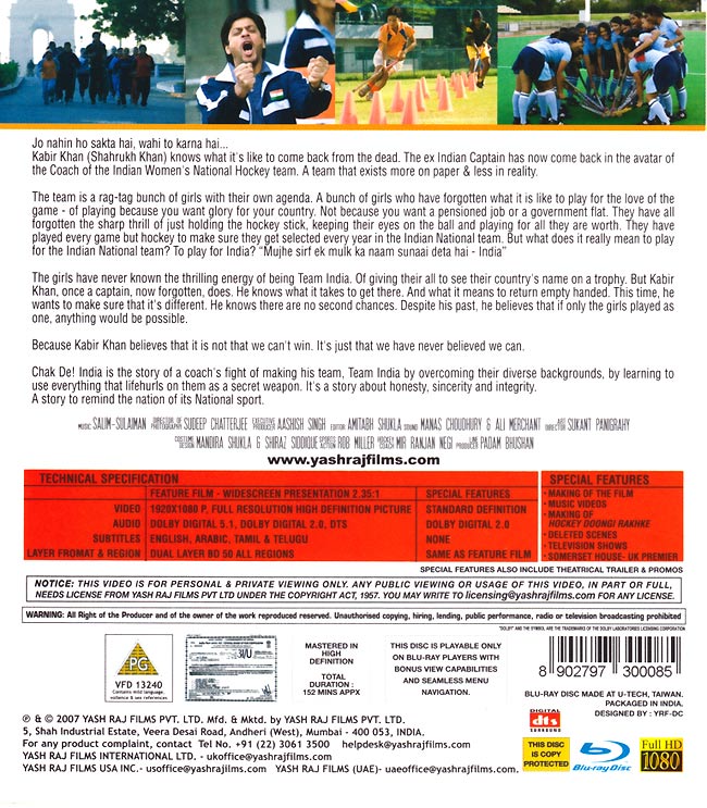 ストーリーだけでなく音楽も素晴らしく、テーマ曲の「Chak De India」は一度聞いたら忘れられなくなるほど覚えやすく、歌いやすい曲です。サントラもオススメ!