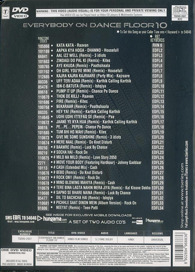 Rock ON、Raavan、3 Idiots、Paa、ISHQIYA、など、2009〜2010年のヒット映画のダンスソングが、てんこ盛り!!