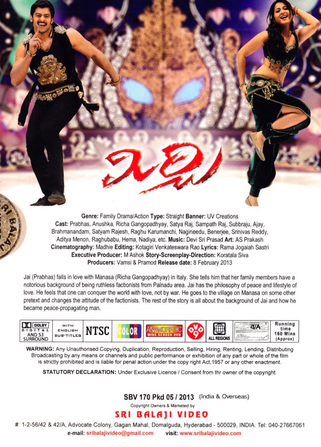 | 出演、製作者 | Koratala Siva Prabhas Sathyaraj Anushka Shetty Richa Gangopadhyay Nadhiya Adithya Menon Brahmanandam |