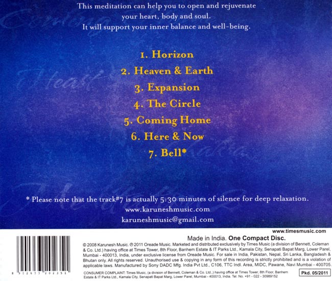 Karunesh - HEART CHAKRA MEDITATION II - COMING HOME収録曲一覧