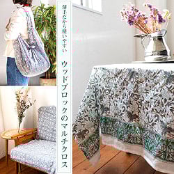 ウッドブロックプリントが魅力的なインド綿のマルチクロス。