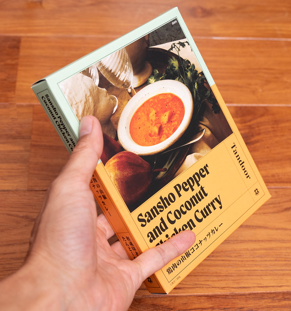 山椒の爽やかな香りを楽しむ、新しいおいしさ。和魂印才たんどーるの新定番、「山椒ココナッツカレー」をレトルトパックに詰めました。山椒とココナッツという、カレーでも珍しい組み合わせ。けれども塚本シェフの和魂印才力で、初めて食べるのにどこか懐かしい、新鮮なのに舌に馴染む、リピーター続出の味になりました。