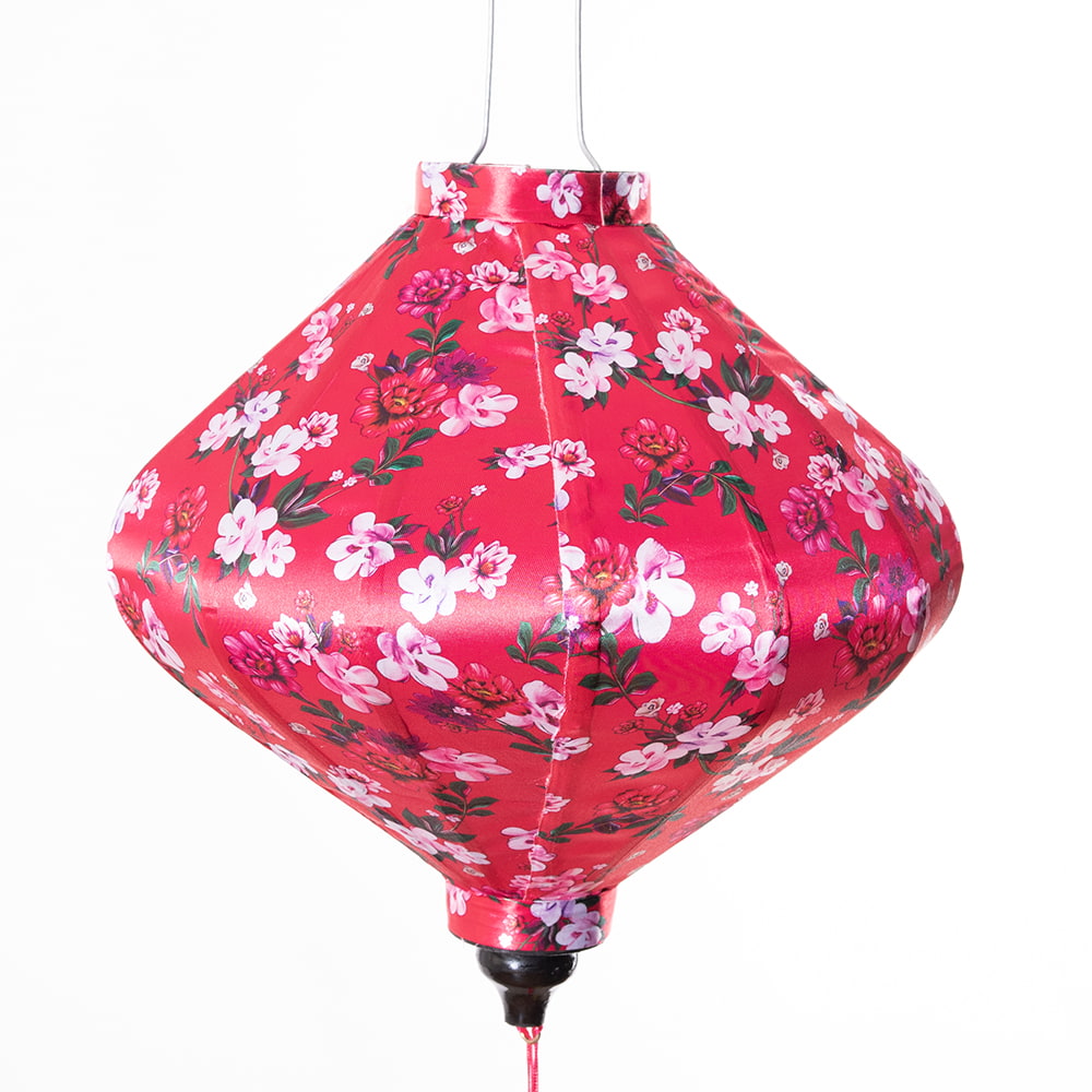 【3個セット】華やかな柄入り ベトナム伝統のホイアン・ランタン(提灯) - ダイヤ型〔レトロ小花模様〕 通販店