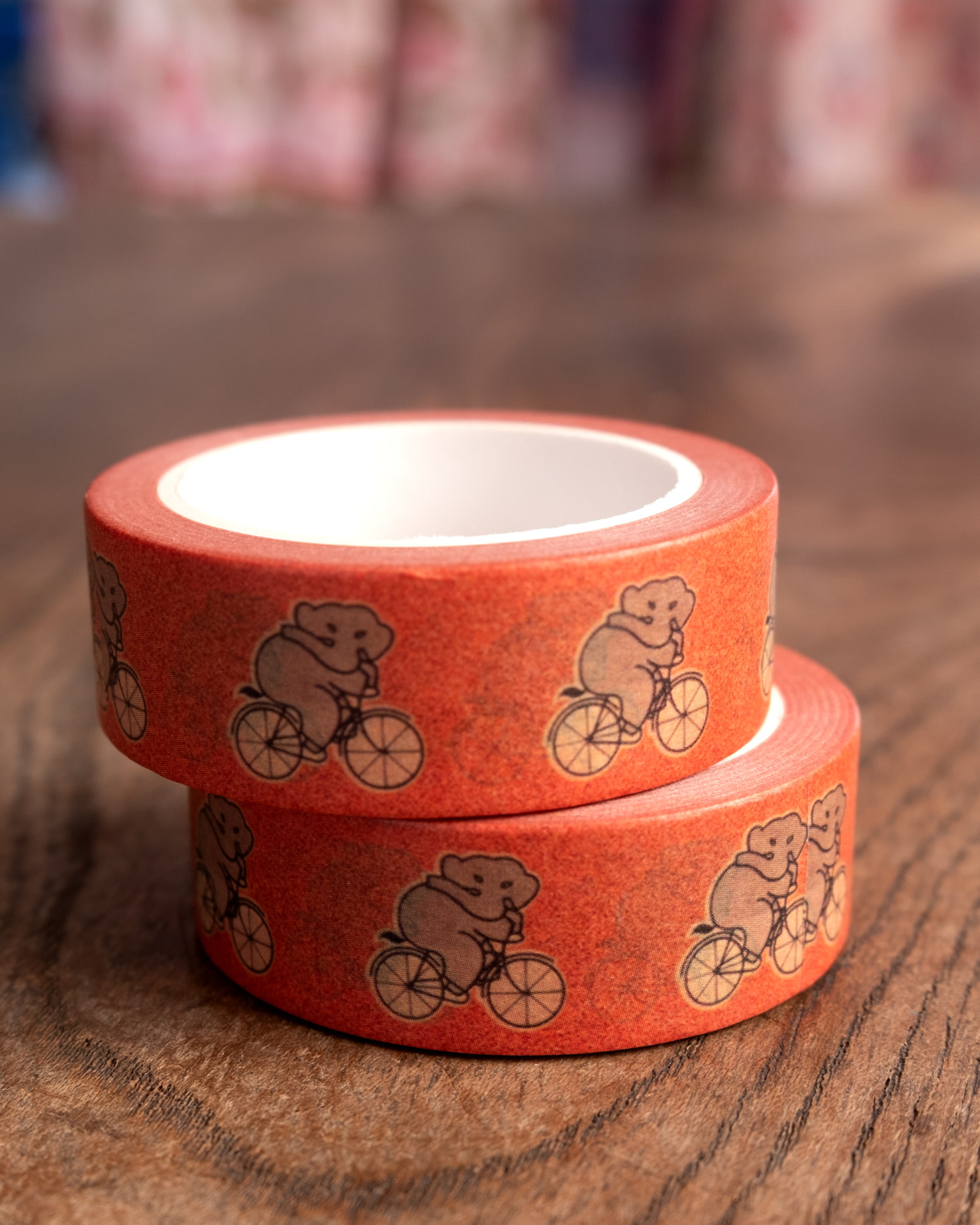 ちょっと目つきの悪い自転車ぞうさん-ティラキタオリジナル マスキングテープ 15mm x 10m x 6個