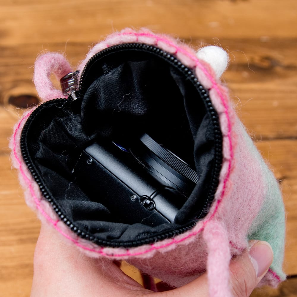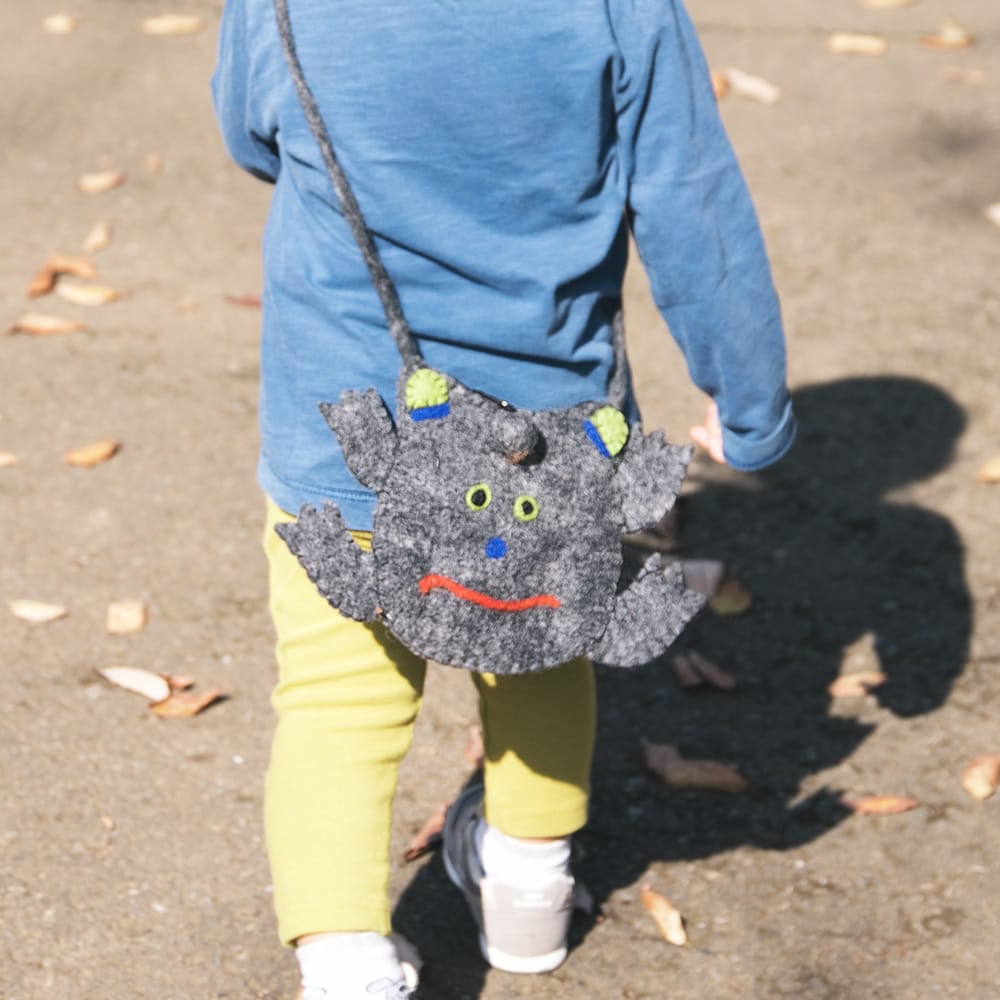 ちょっとした身の回りの小物を入れておくのに便利なサイズ感。フェスで、小銭入れなどの必需品を持ち歩くのに使ったりするのも良いですね。他にはないデザインなので、会話のネタにもなりそうです。ゆるいデザインにフェルトの優しい肌触りで、お子様にもぴったり。お友達や家族へのプレゼントにもオススメです。