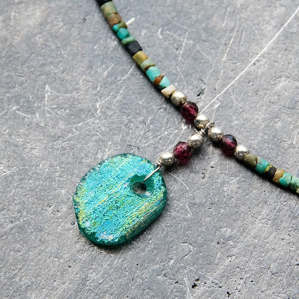 〔一点もの〕ターコイズとローマングラスのペンダント付きネックレス ローマ時代からの贈り物 通販店