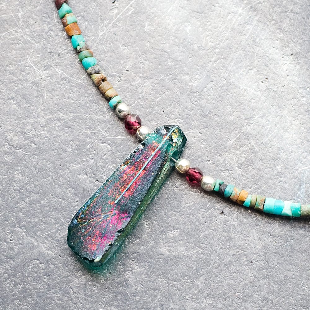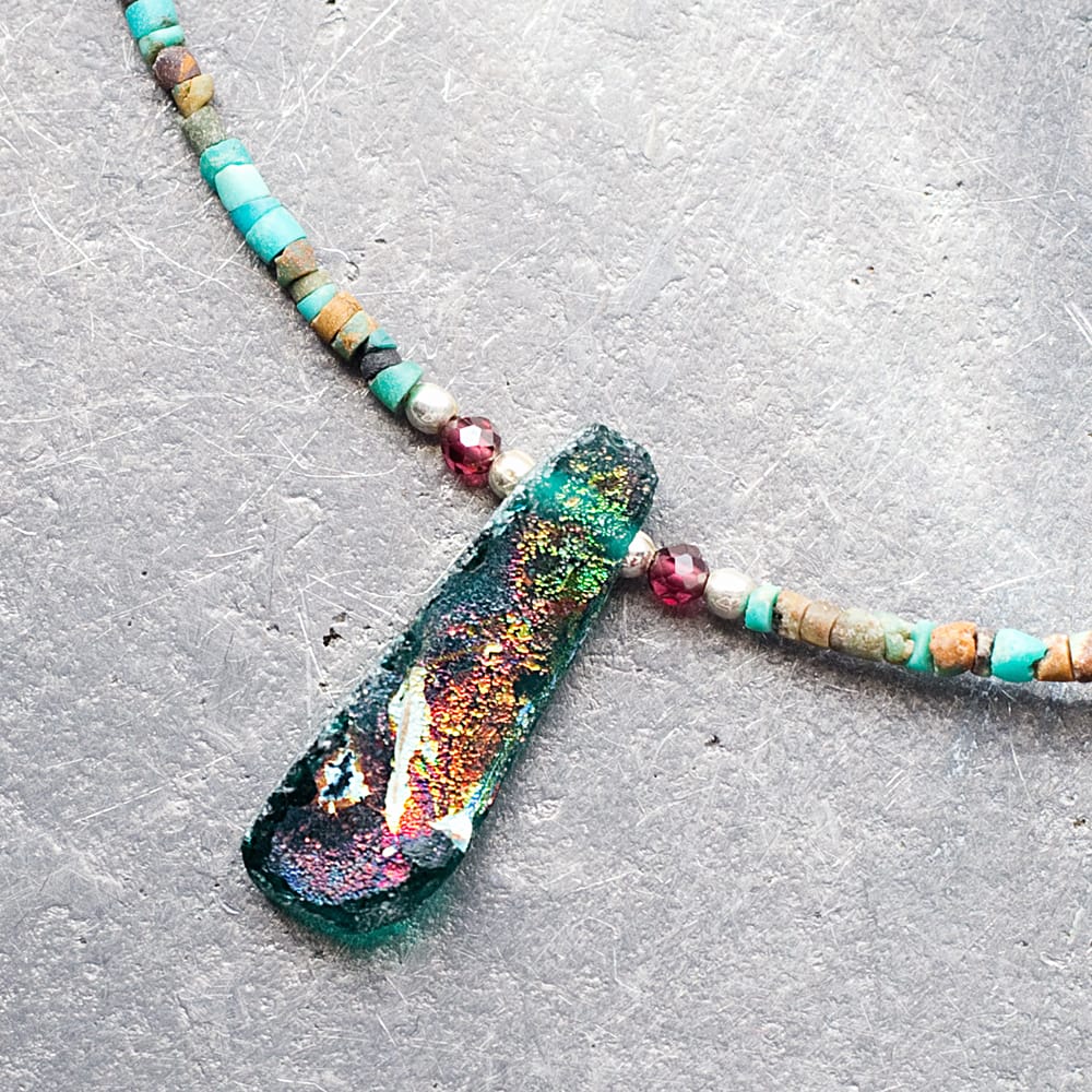 〔一点もの〕ターコイズとローマングラスのペンダント付きネックレス ローマ時代からの贈り物 通販店