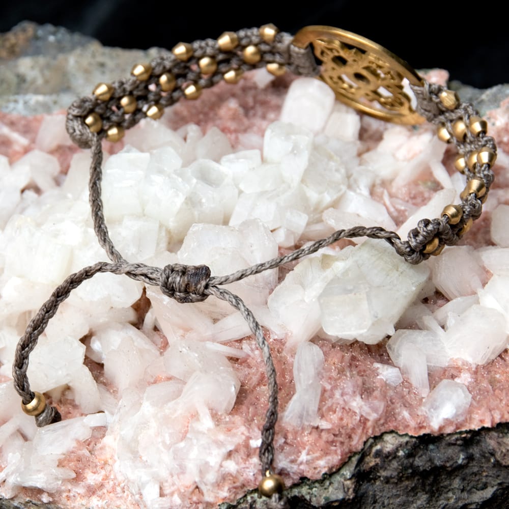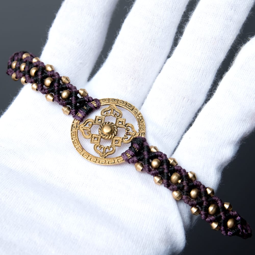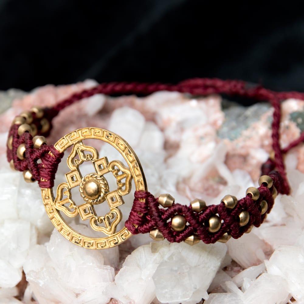 古くはアラビアに起源を持つとされる「マクラメ」編み。その歴史を偲ばせるような幾何学模様の美しい組み合わせにインドのテイストが加わった素敵なブレスレットが入荷しました。■仏教のマンダラがモチーフ