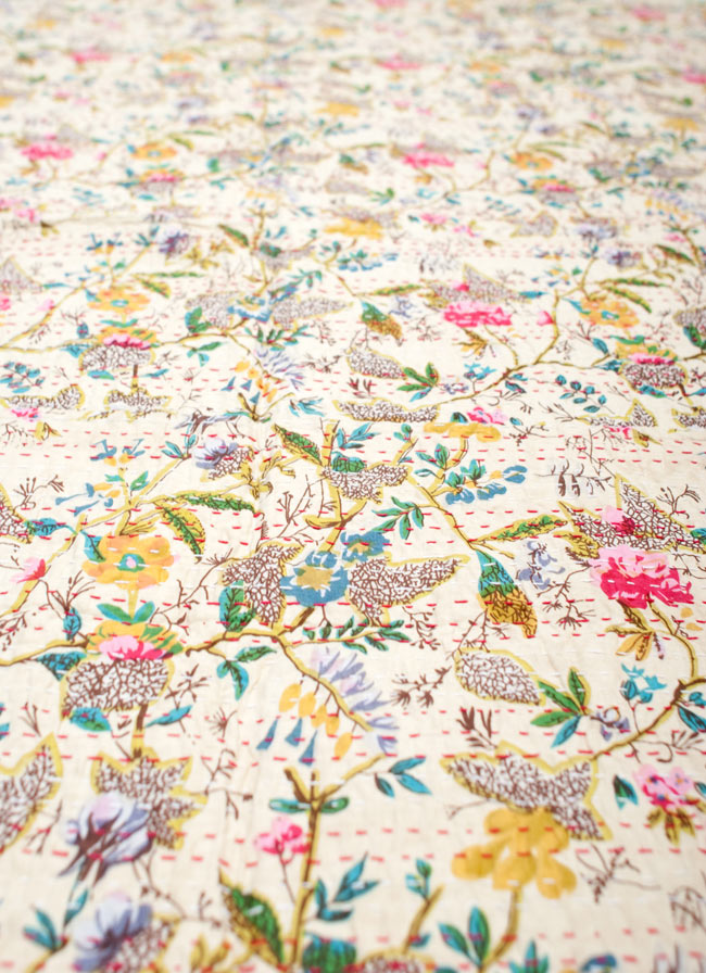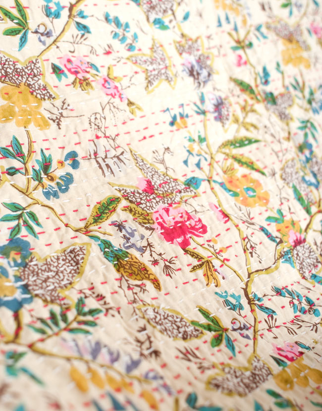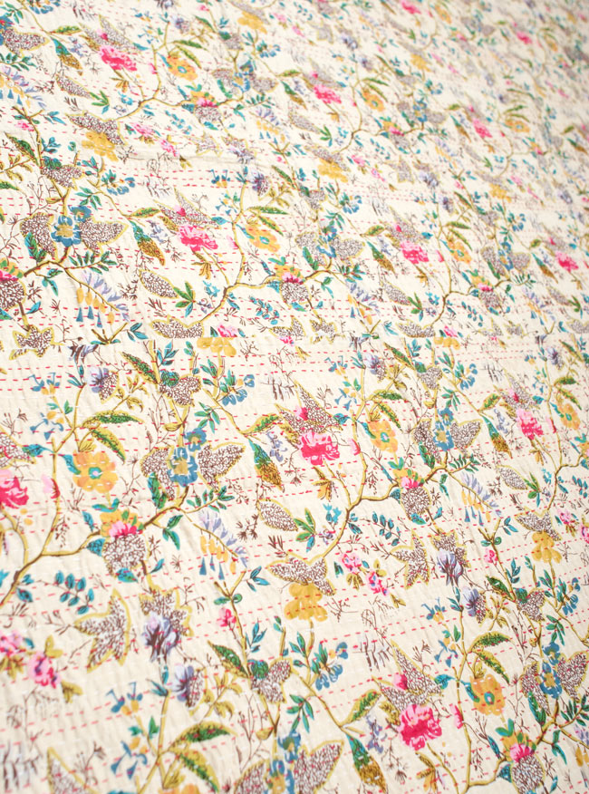 インドの伝統的な刺し子、ラリーキルト(カンタ刺繍)のソファー&ベッドカバーです。