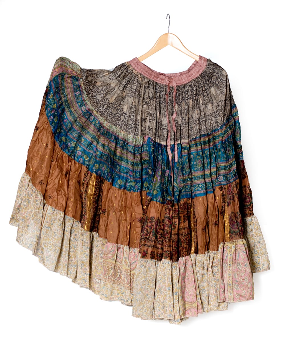 25ヤード アンティークサリーのジプシーパッチワークスカート4段【90cm】 通販店