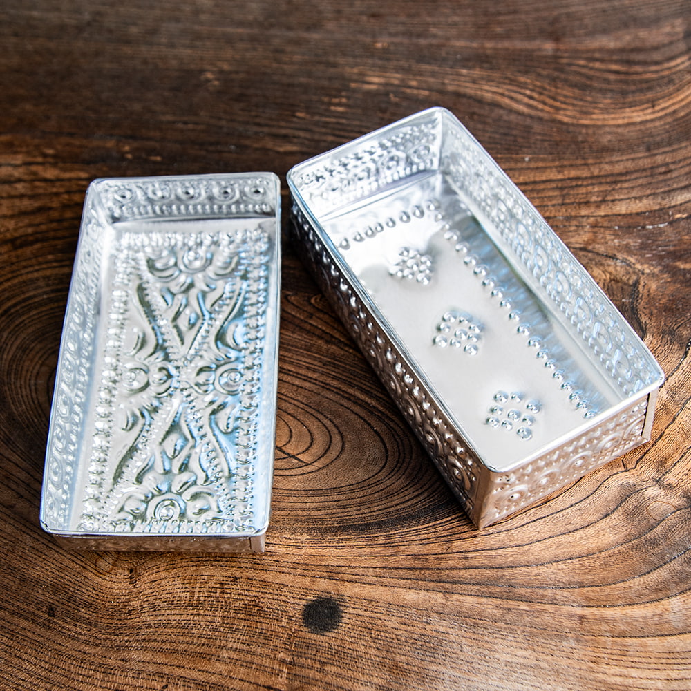 なお、一見すると機械で型押ししたかのように見えますが、バリの職人さんがこつこつと叩いて手作りしてます。手作りのもたらすゆらぎがなんとも素敵ですね。