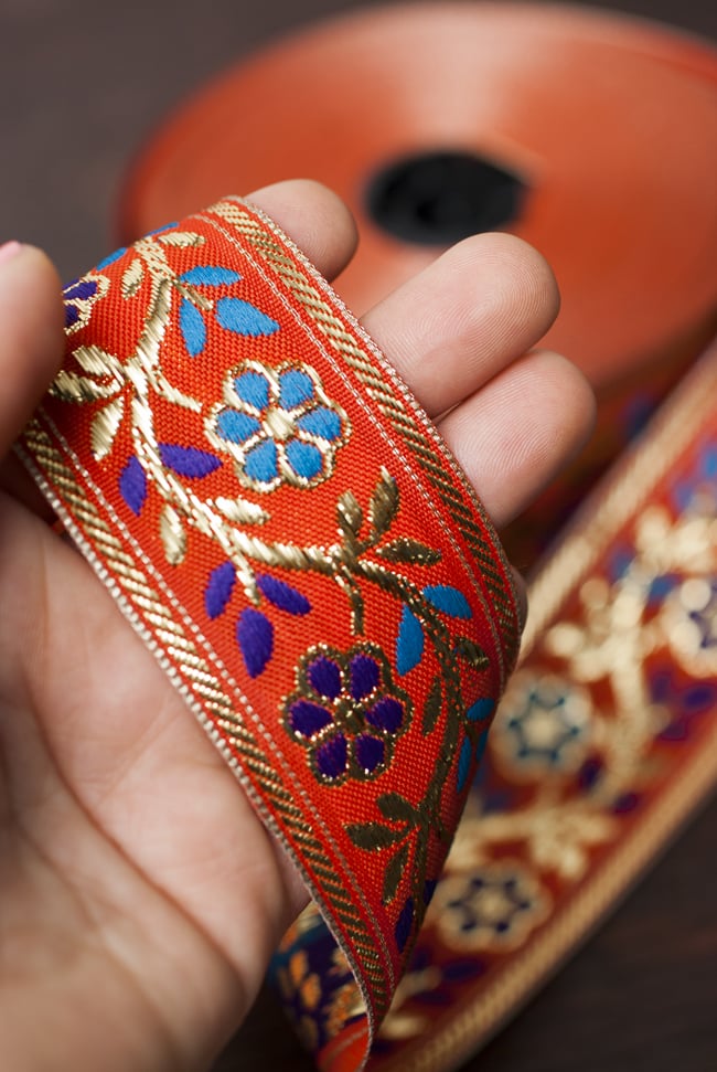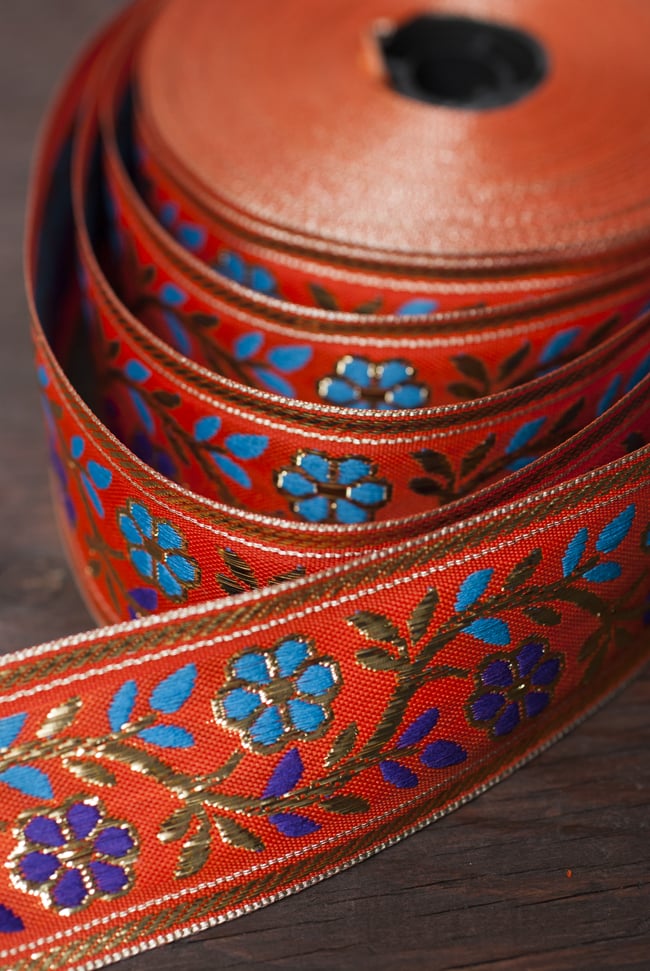 金糸入りチロリアンテープ- メーター売り(太幅 約4cm) - 朱色の類似商品
