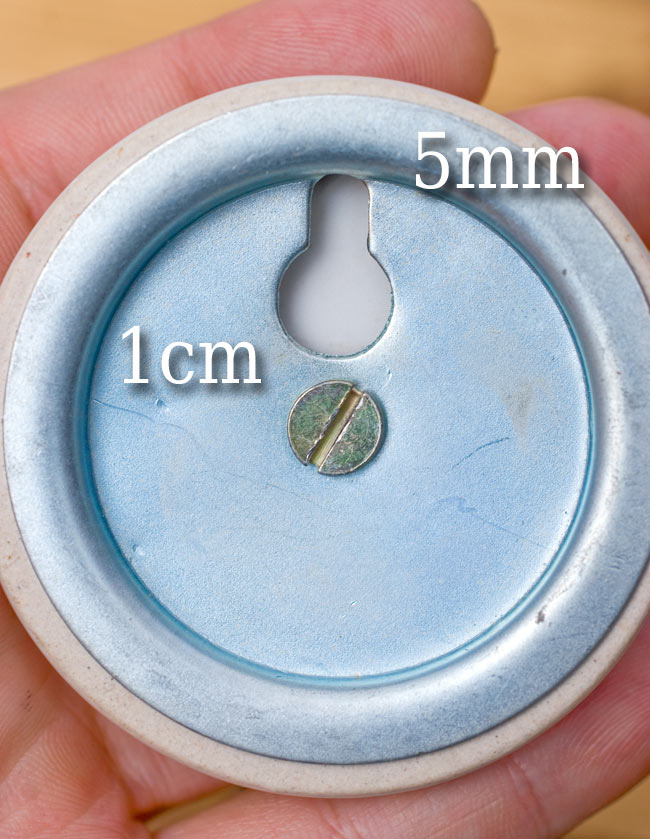 裏面はこのように穴が開いていますので、ねじやくぎの頭に簡単に引っ掛けられるようになっています。