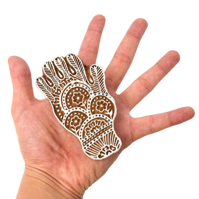 ウッドブロックスタンプ【メヘンディ】[10cm x 5cm]の商品写真 2枚目 手に持ってみました。