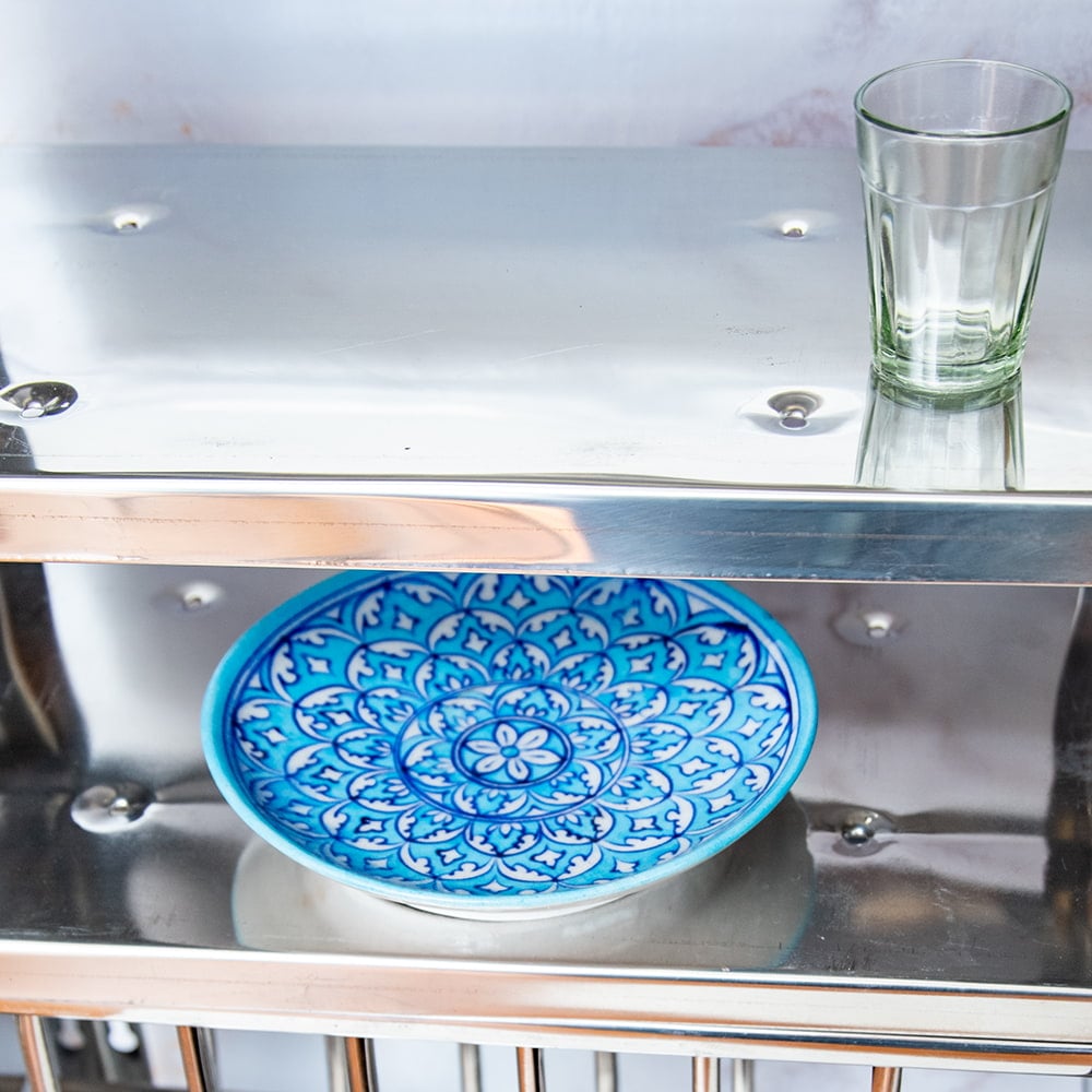 時代の流れに伴い徐々に生産されなくなってきた無骨なインディアンキッチンラック。インドでも見かけることが少なくなってきており、今後一層希少な存在になっていくと思われるレア品です。食器棚というと日本では木製のものが好まれますが、インドやネパールの壁の色味や少し薄暗い雰囲気と無骨なステンレスの食器棚はとても素敵な組み合わせなのですね。すこし昭和テイストのあるレトロ感といい独特な味わいがインド好きにはたまらない一品です。インド料理ファンだったらターリーをぜひずらりと立てかけたくなりますね。まさに「魅せる収納」といったアイテムです。