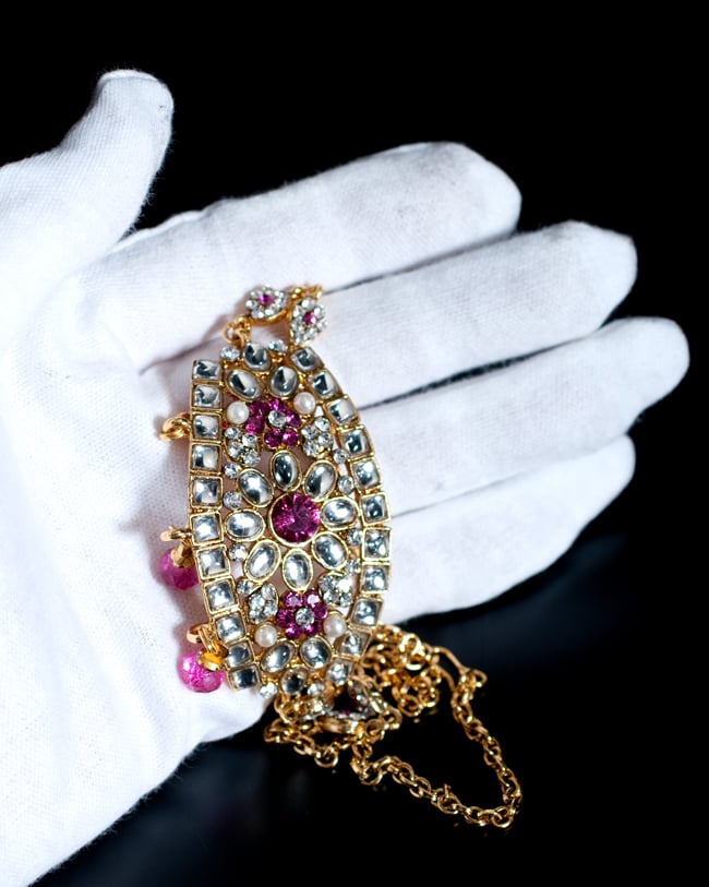 インドでは手に付けるアクセサリーのパンジャや、髪飾りのティッカ、鼻ピアスのノーズリングに、ピアスなど他のジュエリーも沢山身につけて主に結婚式などに使われます。また、現代ではパーティーなどへのジュエリーとしても人気があります。他にもイベントや舞台、発表会などなど様々な場面でオススメです。