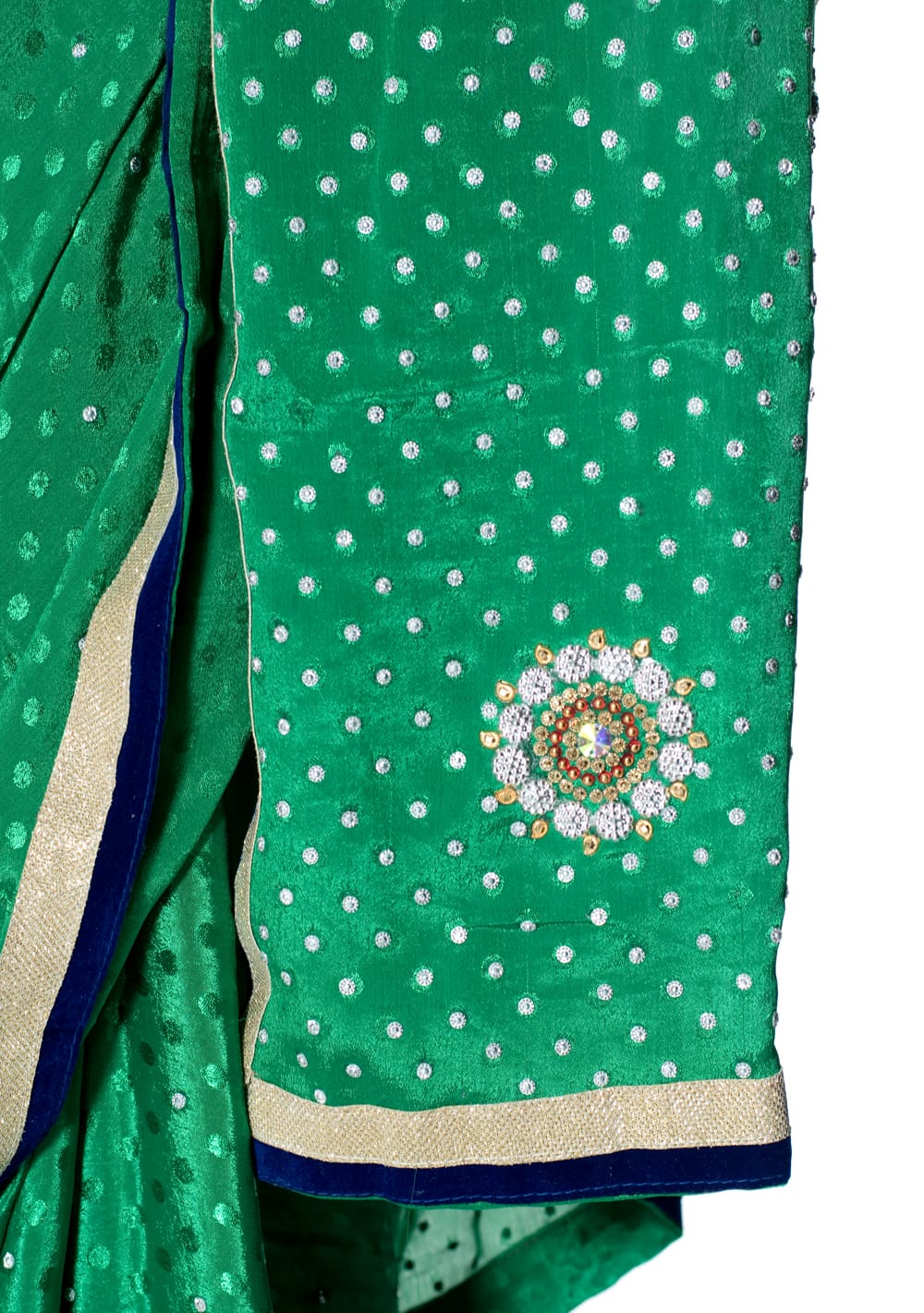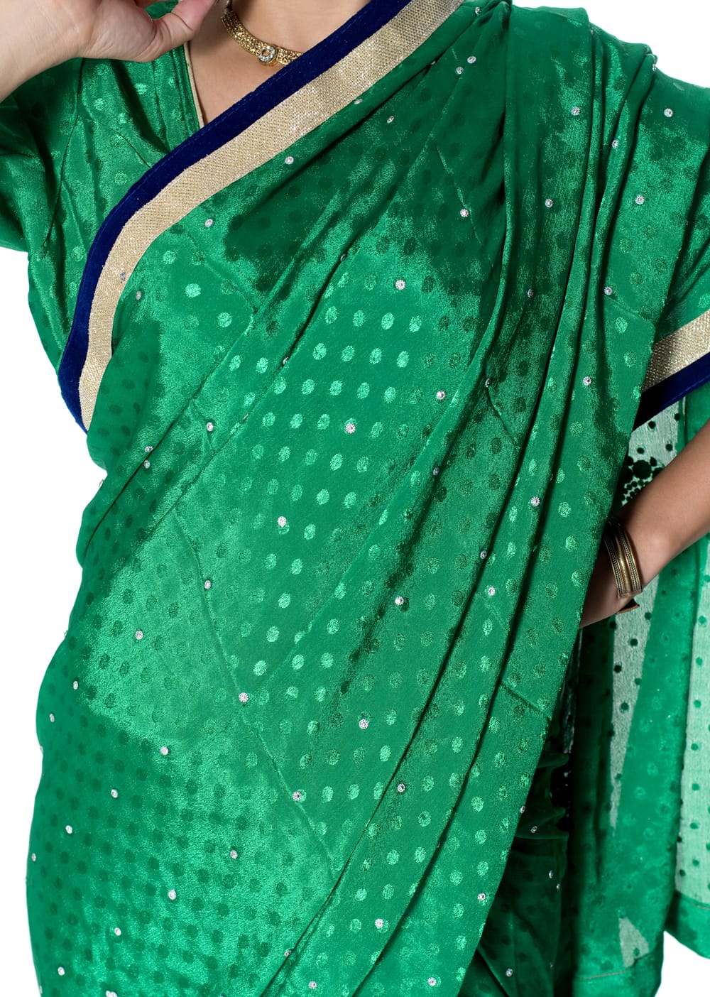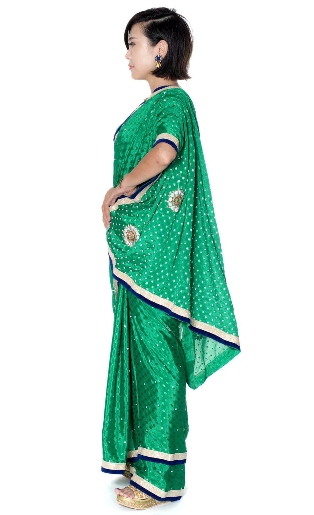 • ビーズ刺繍のドット柄マハラニインドサリー【チョリ付き】 - 緑10枚目の下部説明写真です