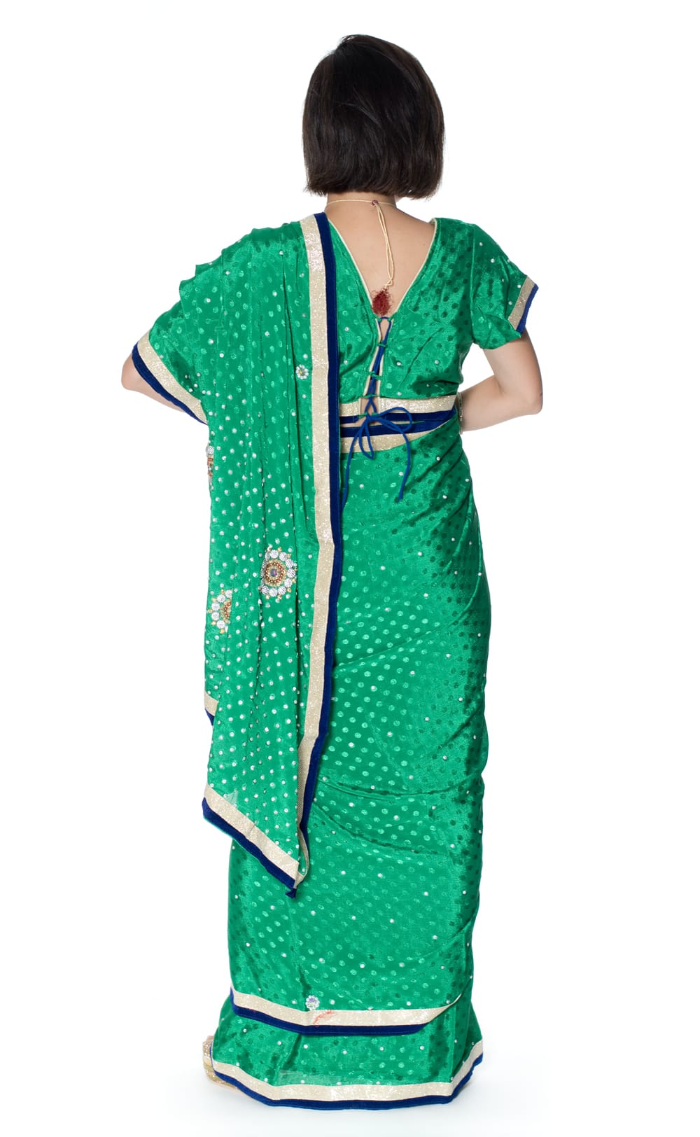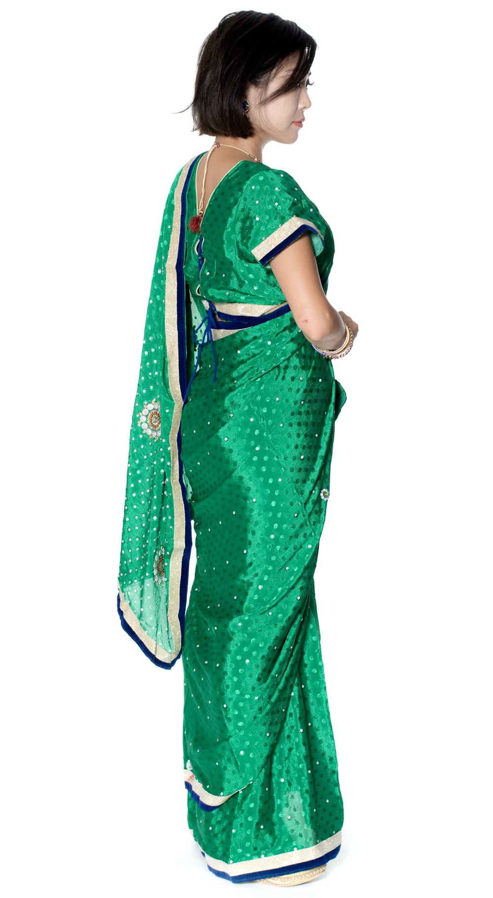 ビーズ刺繍のドット柄マハラニインドサリー【チョリ付き】 - 緑の商品写真 3枚目 後ろからの写真です