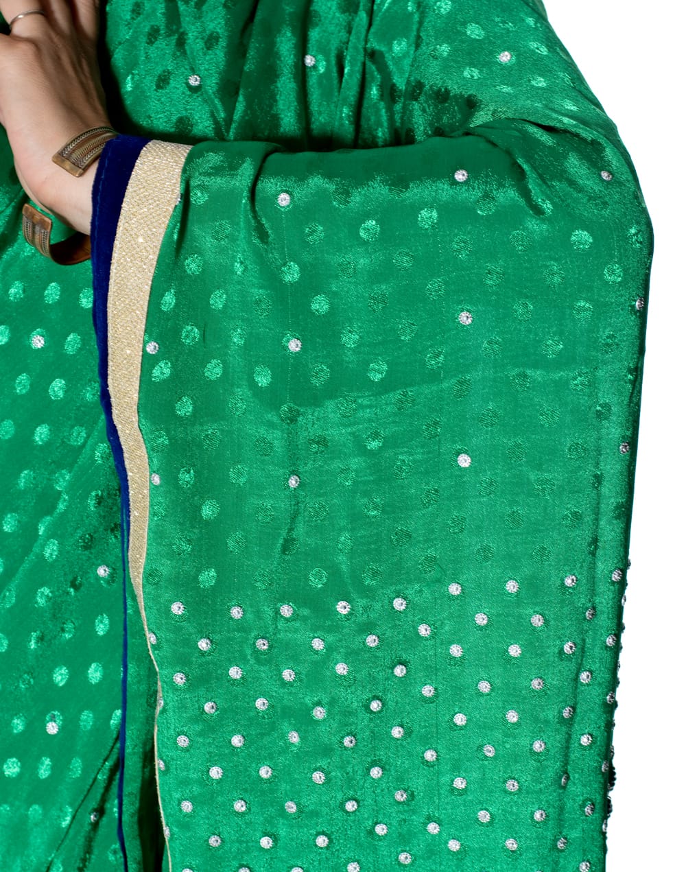 ビーズ刺繍のドット柄マハラニインドサリー【チョリ付き】 - 緑が欲しい!!ビーズ刺繍のドット柄マハラニインドサリー【チョリ付き】 - 緑が欲しい!!