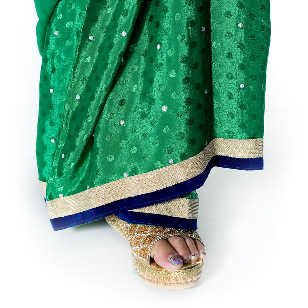 ビーズ刺繍のドット柄マハラニインドサリー【チョリ付き】 - 緑の商品写真 8枚目 足元の写真です。ヒールのあるサンダルとも相性が良いです。