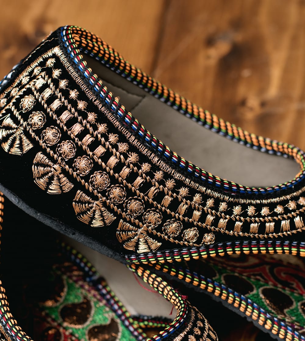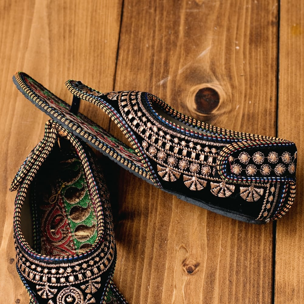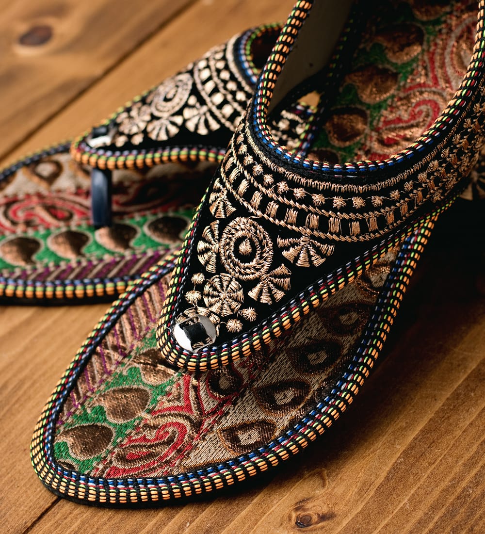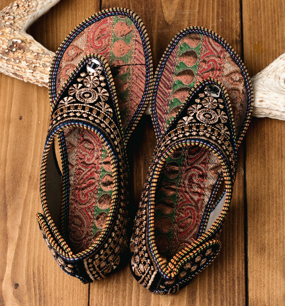 「チャッパル」と呼ばれるまさにインド!という華やかなサンダルがやって来ました。ビーズやスパンコールがキラキラと輝き、ところ狭しと刺繍が施されています。このサンダルでパンジャビドレスやサリーを合わせたら、コーディネートは完璧だね!というインドスタイルです。インドの女性って本当に華やかなデザインが好きなんだな?と改めて実感する一品です。エスニックファッションだけでなく、シンプルにデニムやTシャツに合わせてもかっこよく決まりますよ!■現地のインド人女性向けの商品です