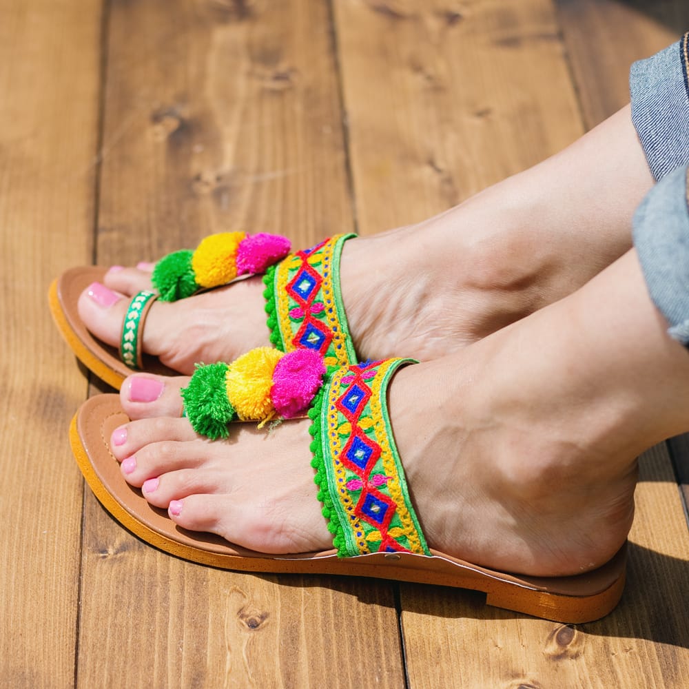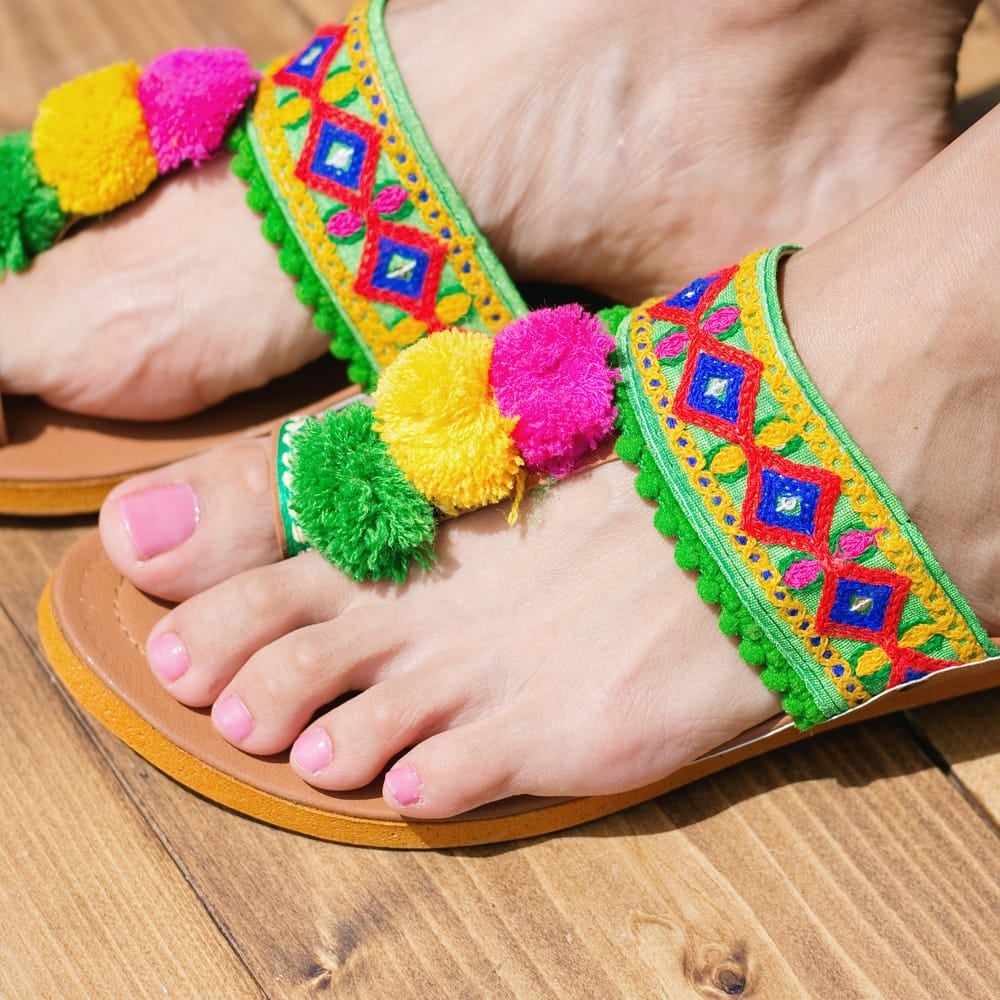 カッチテイストのカラフル刺繍サンダル