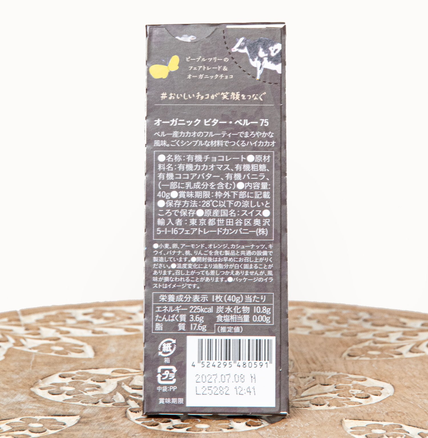 フェアトレード&オーガニックチョコ・板チョコオーガニック ビター・ペルー75[40g][12個までメール便可] 通販店