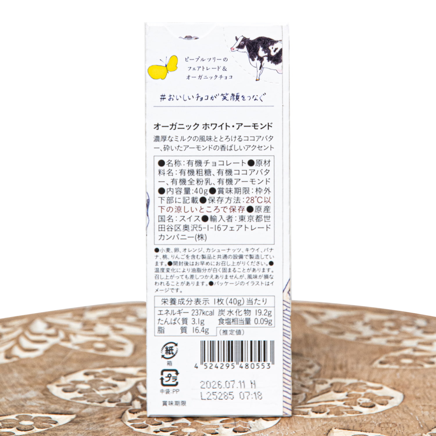フェアトレード&オーガニックチョコ・板チョコオーガニック ホワイト・アーモンド[40g][12個までメール便可] 通販店