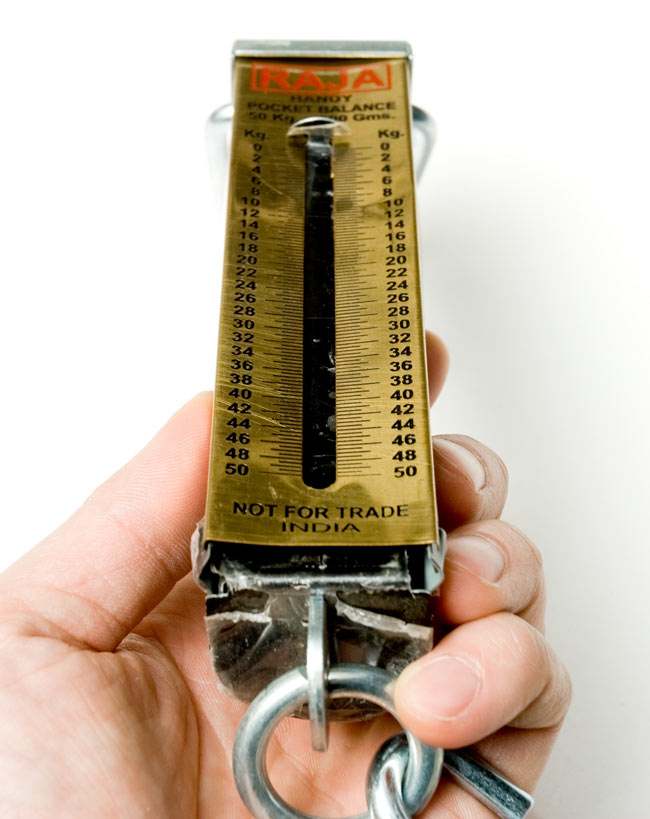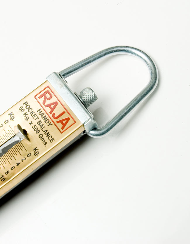 アンティーク風の質感がたまらない、ブラス製のスプリングスケール(吊りはかり)。インドのスプリングスケールは、イギリス統治時代から作られるようになり、現在も使われています。