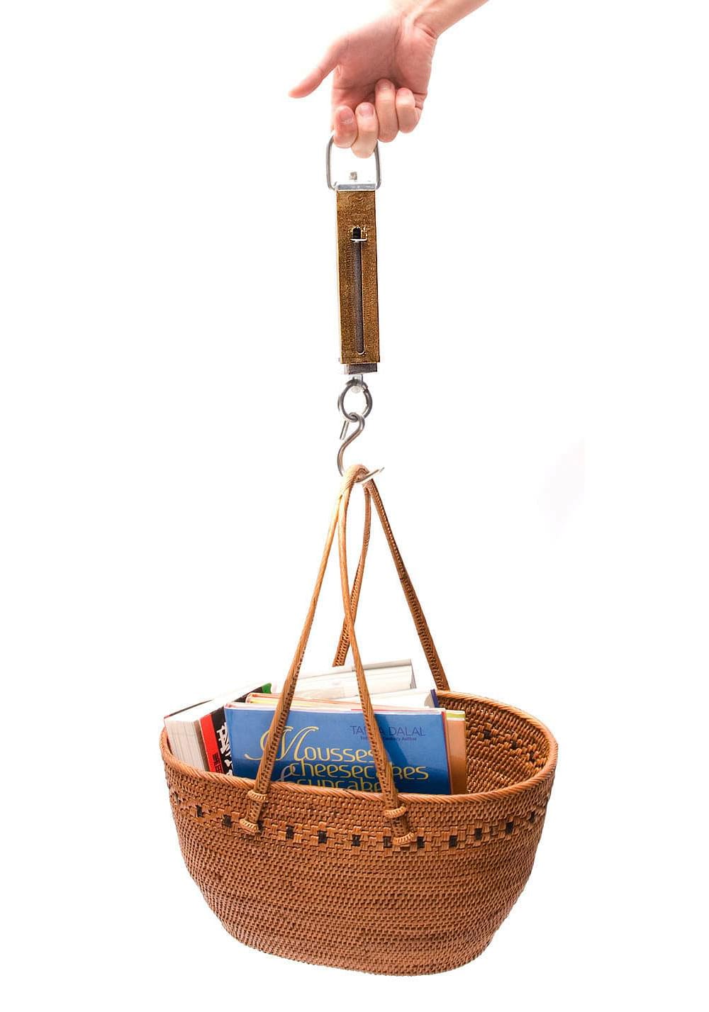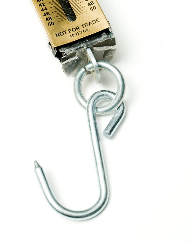 無骨で頑丈な手触りが魅力のフックがついています。50kgまで測れます。
