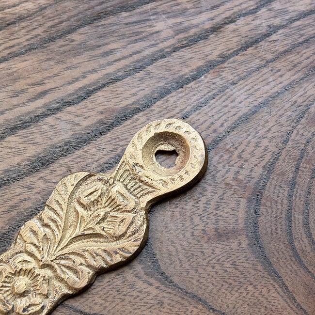 柄にはインドらしいオリエンタルな模様が彫り込んであり、キッチンに並べるだけで満足してしまいそうな可愛さがあります。柄の先端には穴が空いていますので、フックを掛けて簡単に吊るせます。コンロ横に吊るして見せる収納にすれば、オリエンタルなインテリアの完成!