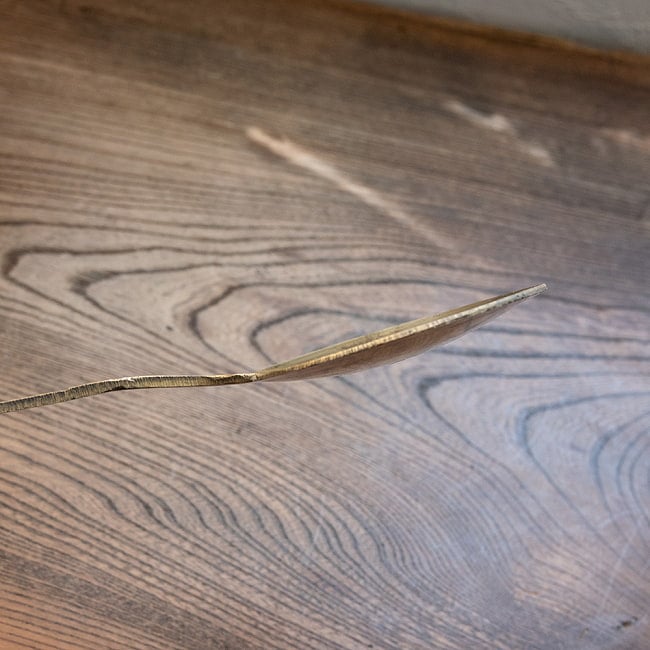 日本では中々お目にかかれない、真鍮製の調理器具です。おたま…というには深さがやや物足りませんので、炒めもの時に使ったり、料理を取り分けたりするのに良さそうなサイズ感になります。
